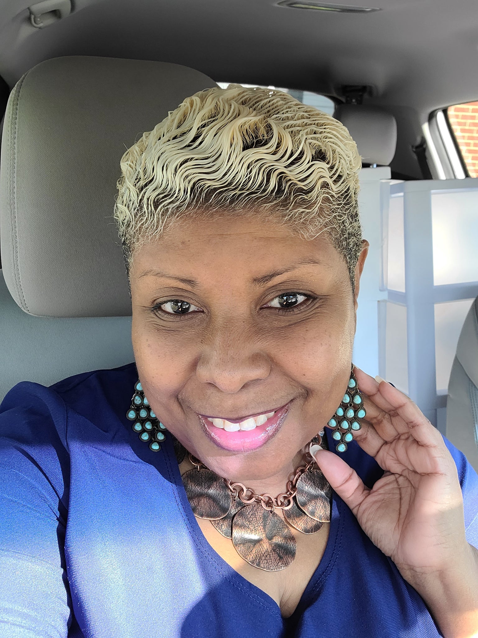 Featuring studded brass frames, dainty turquoise teardrops cascade from the ear. The earthy frames dangle from a netted backdrop, coalescing into a rustic lure. Earring attaches to a standard fishhook fitting.
